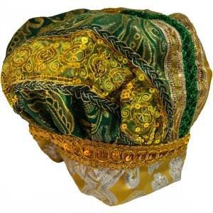 Gorro de Gala de Orula Verde y Dorado – Sombrero Ceremonial de Santería