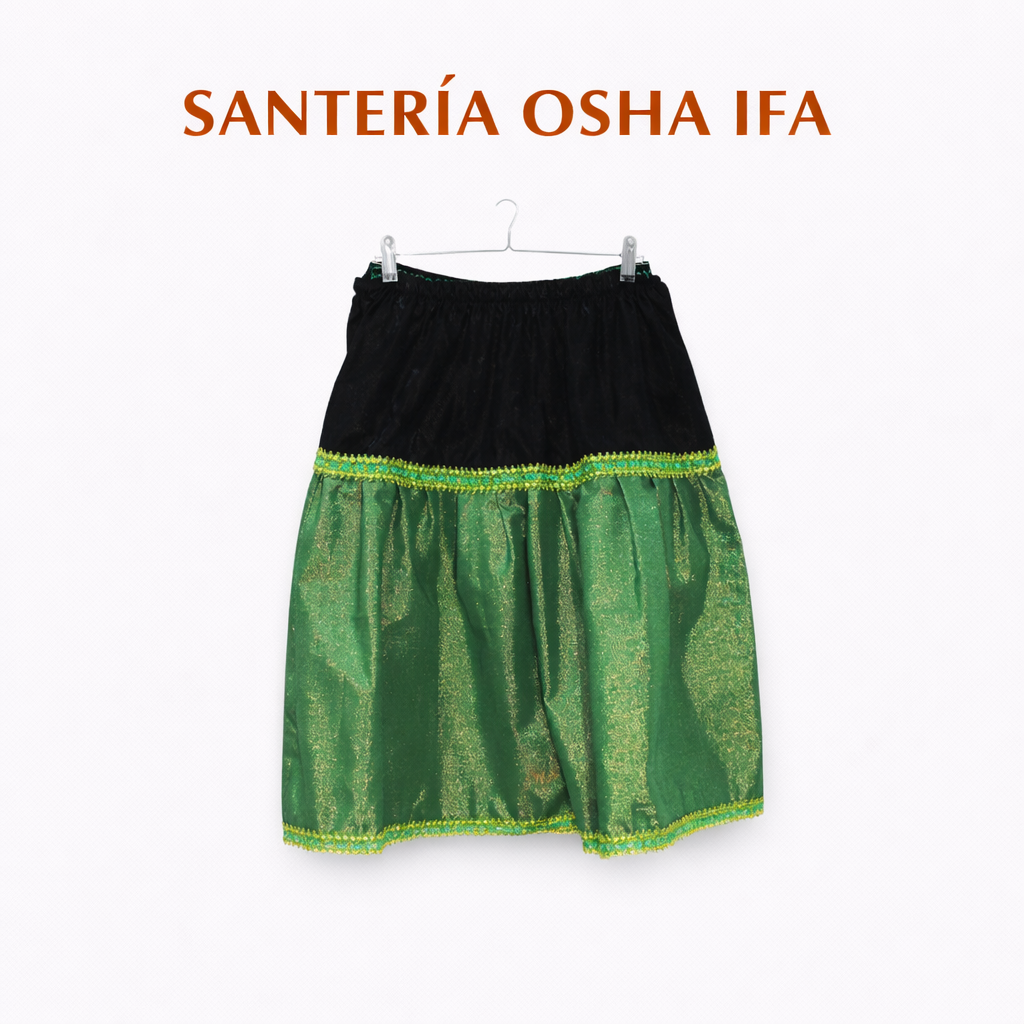 La saya de santería es una prenda ceremonial muy representativa dentro de la tradición Yoruba y afrocubana. Utilizada en rituales, bailes, celebraciones religiosas, festividades y consagraciones, esta pieza destaca por su profundo significado espiritual y su valor dentro de las prácticas devocionales.